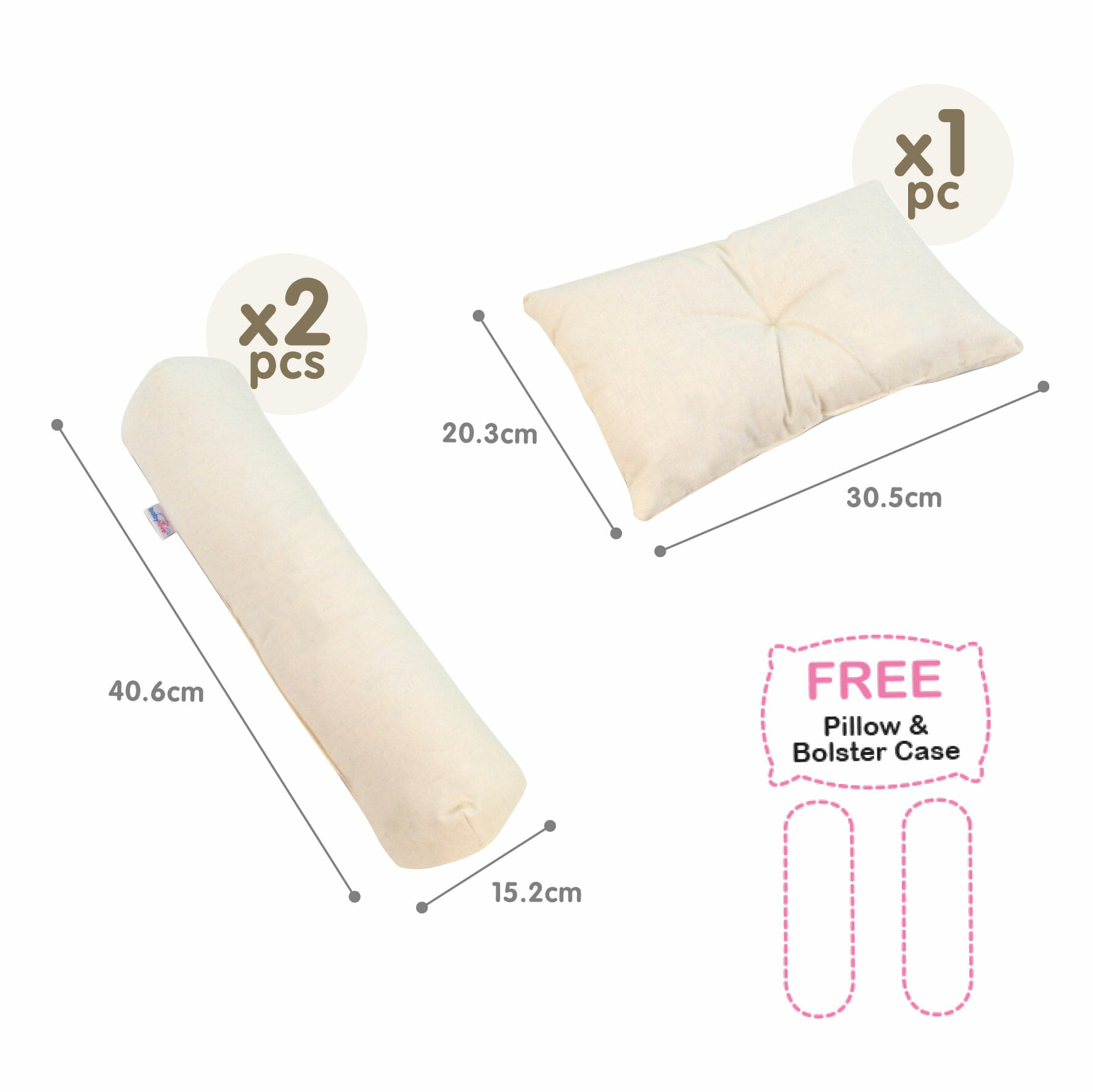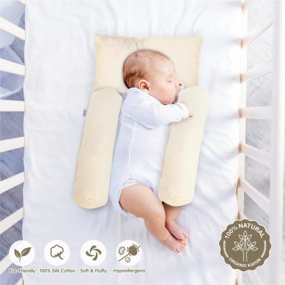 The Babylove Organic Kapok Dimple Pillow and Bolster set is specially designed to provide your little one a safer, healthier and a more comfortable sleeping environment. Comes with a dimple pillow and two(2) bolsters, this set is made from Kapok, an organic fibre grown on Silk Cotton Tree. Known as the most healthy and chemical free fibre, it is naturally hypoallergenic, cooling and breathable providing your baby the best sleeping experience leading to a fully rested parent.