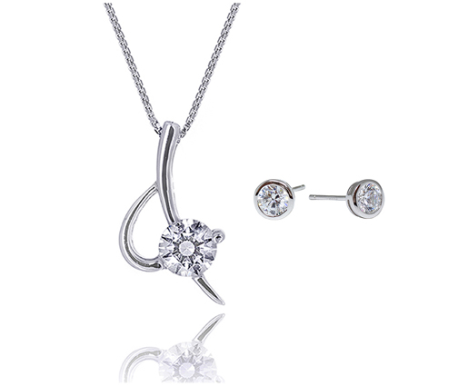 A unique blade pendant with a classic Swarovski Zirconia stud as a centrepiece. Coupled with a pair of classic round stud earrings, this is a classic gift that no girl would reject.